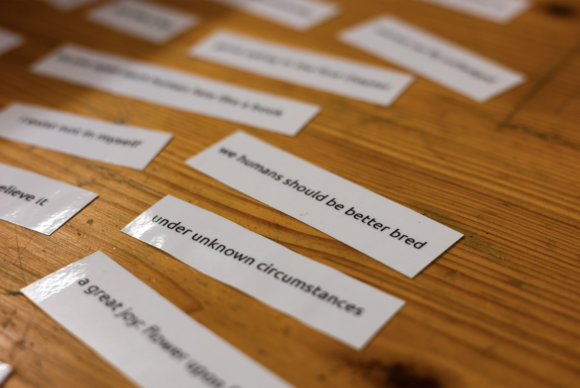 The second exhibition, ‘Hauntings’, started on the 13 November – what day could be better to start a haunted exhibition than the thirteenth of the month! ‘Hauntings’ was an exhibition of visual and object poetry with 14 marvellous artists. It showed very well the beauty, creativity and intricacy of visual and object poetry. Overall, it was a captivating show! The exhibition featured poets from the UK, the US, Canada and beyond. Contributors included Josephine Carter, Sarah Cave, Stephen Emmerson, Alexis Fedorjaczenko, Lara Felsing, Stephen Mooney, Nick Murray, Jacqueline Nicholls, Astra Papachristodoulou, Vik Shirley, Sasha Stiles, Luke Thompson, Robert R. Thurman, and me.